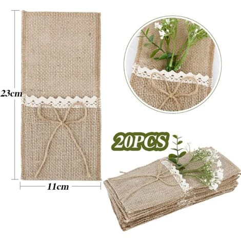 Paquet inclus: 20pcs Pochettes Sac Toiles Jute Dentelles.
