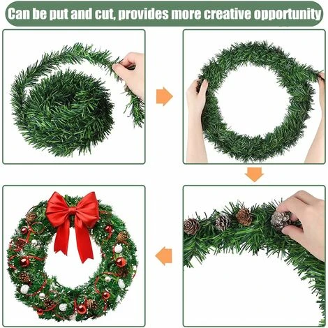 [Haute qualité] Fabriqué en plastique de haute qualité, un fil métallique léger est enveloppé à l’intérieur, ignifuge et durable, texture douce, pas facile à perdre, pas facile à casser, longue durée de vie [Verdure non éclairée] La guirlande artificielle est vert foncé naturel, avec un aspect réaliste et ressemble à une vraie plante, est un complément parfait aux décorations de Noël [Facile à bricoler] Facile à façonner, peut bien garder la forme, peut s’entremêler les uns les autres, ou ajouter divers arcs, fleurs et boules, etc. à la couronne pour créer votre propre couronne de Noël [Applicable] Parfait pour les fêtes telles que Noël, les festivals, les mariages ou les décorations intérieures et extérieures. Convient pour décorer une cheminée, une rampe d’escalier, une porte, un cadre de fenêtre ou toute autre position pour créer une atmosphère de Noël spéciale