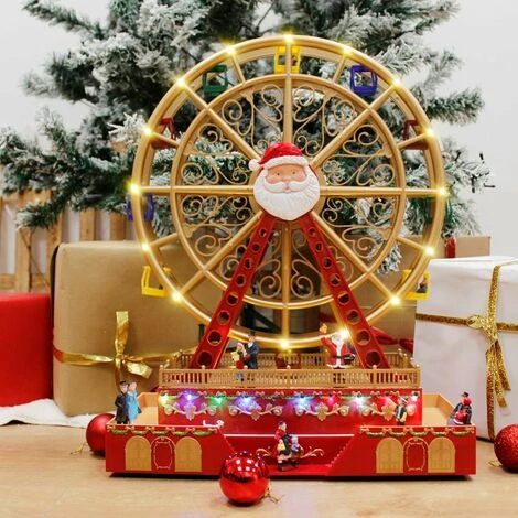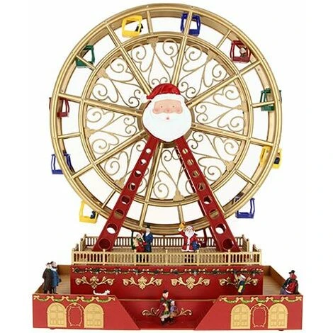 Grande Roue Village De Noël Lumineux & Musical H. 49cm – Rouge –