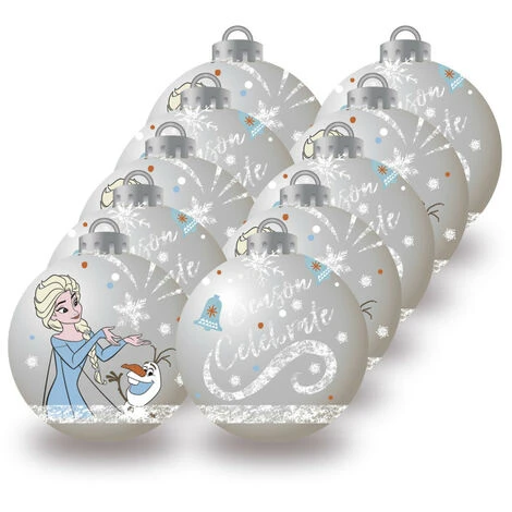 Pack de 10 boules de sapin de Noël diamètre 6cm. Idéal pour décorer la maison à Noël avec vos personnages préférés. En plastique avec motif imprimé et décoré à la main (effet neige) Conforme aux réglementations européennes.