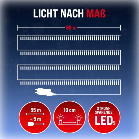 200 / 400 ou 600 LED (selon la guirlande choisie) de couleurs différentes créent une ambiance chaleureuse.