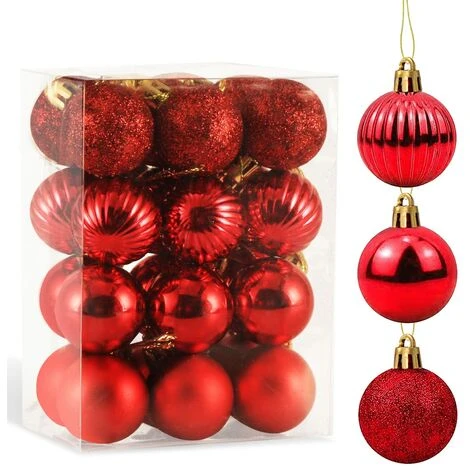 Le set de boules de Noël contient 24 boules de Noël rouges, chacune d’un diamètre de 3 cm.