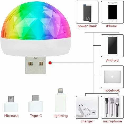 de karaoké ou tout autre avec un périphérique de port de sortie USB de. [Facile à transporter]: La mini boule disco est très petite et portable, puissante, peut fournir une lumière vive et clignotante, parfaite pour apporter une atmosphère de boule disco, de beaux gadgets, beaux et colorés [Car Built-in Light]: l’éclairage multicolore améliore les effets de scène pour un meilleur chant et un meilleur plaisir [Apparence petite et exquise]: Taille du corps de la lampe: 4 * 4cm, la meilleure zone d’éclairage est de 5 à 10 mètres de suqare. [Dernière chaleur longue et faible]: Notre conception de mini boule disco USB pour une longue durée de travail, jusqu’à 20 000 heures. Aussi juste une faible consommation de chaleur et d’énergie, protection de l’environnement et conservation de l’énergie.