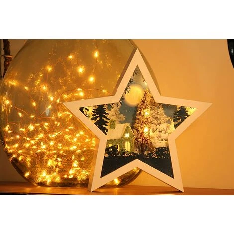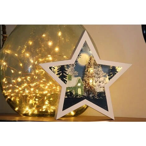 Soyez le premier à laisser votre avis sur “Paysage De Noël Dans Cadre En Forme D’étoile , Scène Hivernale Dans Cadre Lumineux Motifs Petite Maison Enneigée Et Cerfs Dans La Forêt Hx26 Cm.” Annuler la réponse