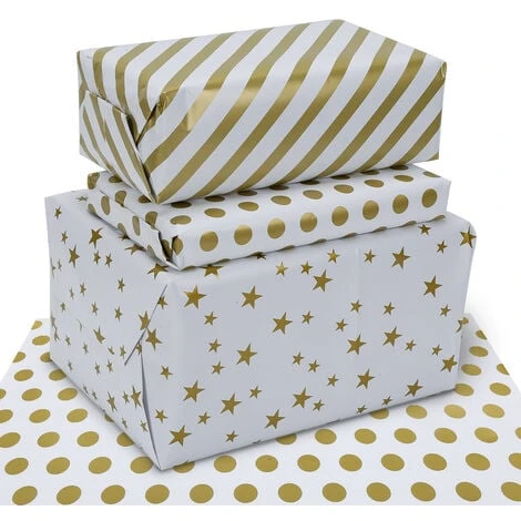 Taille du papier d’emballage cadeau de tous les jours : feuilles pliées en 1/4 pour l’envoi. Les rouleaux de papier d’emballage mesurent 50×70 cm; Parfaitement dimensionné pour emballer une variété de coffrets cadeaux et d’emballages.